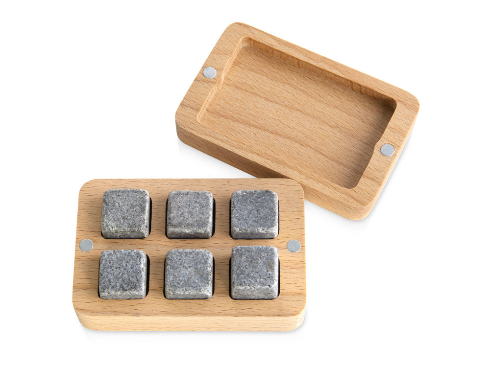 Камни для виски выполнены из талькохлорита, природного материала, также известного как мыльный камень. Они абсолютно безопасны для человека, не окрашивают напитки, в том числе алкогольные, и не меняют их вкус и цвет, а также не меняются при соприкосновении с жидкостями сами. Камни не крошатся, не царапают поверхность сосудов, в которых находятся, благодаря чему их можно использовать и в стеклянных бокалах для крепких напитков. Важное преимущество камней для виски заключается в том, что в отличие от ледяных кубиков талькохлоритные не тают в напитке, а значит, не разбавляют алкоголь, лишь непосредственно охлаждая его. Перед использованием кубики нужно положить в морозильную камеру на несколько часов, а затем поместить в бокал для виски. Готово! Подарочная коробка из бука не только позволит преподнести набор должным образом, но и поможет обладателю в дальнейшем правильно хранить камни. Коробка-футляр состоит из двух половинок с отверстиями под каждый камень, закрывается на 8 магнитов, закрепленных по углам половинок. - необычный тип футляра на магнитах - талькохлоритные камни безопасны для человека и не изменяют вкус, цвет, запах напитков - просты в использовании - многочисленные возможности для персонализации - природные материалы высокого качества Для продления жизни футляра для камней его можно смазывать растительным, оливковым, льняным маслом. Не замачивать футляр в воде, не пересушивать. На время пропитки футляра маслом камни следует извлечь из выемок. Гравировка (CO2 лазер) (Без чернения) на данный товар осуществляется бесплатно. Оплачивается только настройка оборудования в размере 1100 рублей на весь тираж.