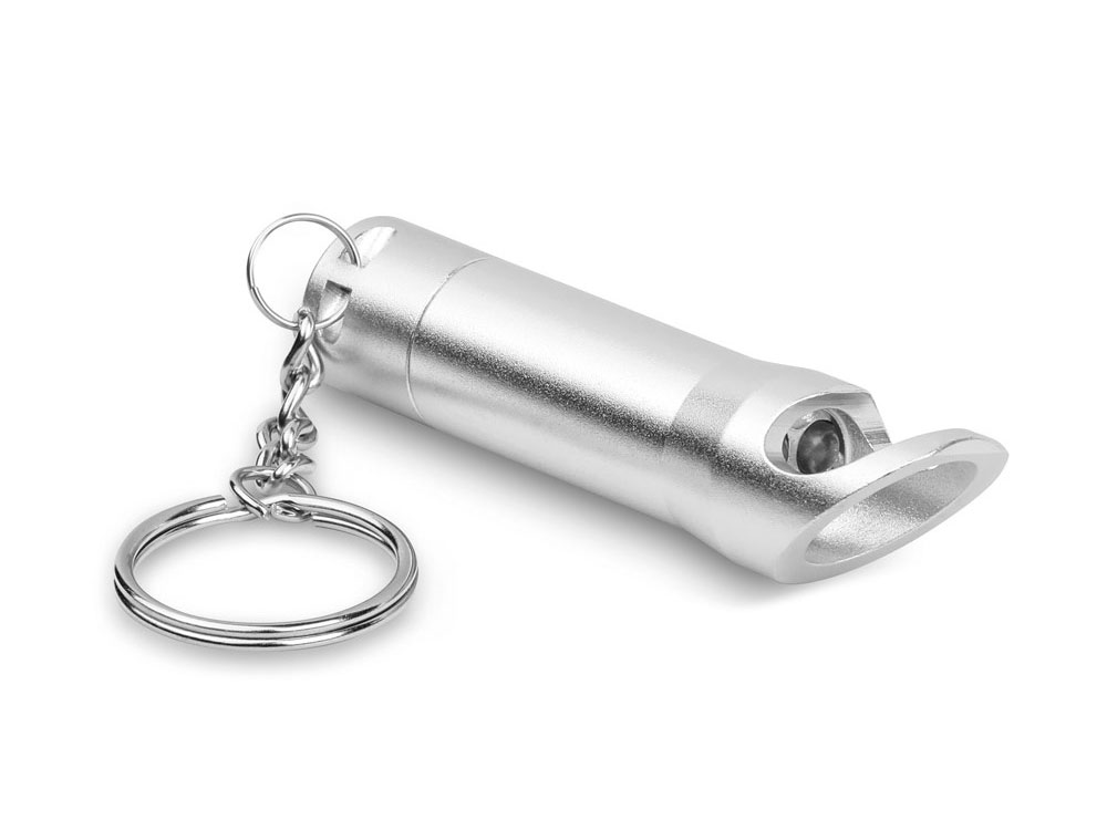 Металлический фонарь с 3 светодиодами, открывалкой и кольцом для ключей. Включает 3 батареи LR44. ø18 x 72 мм